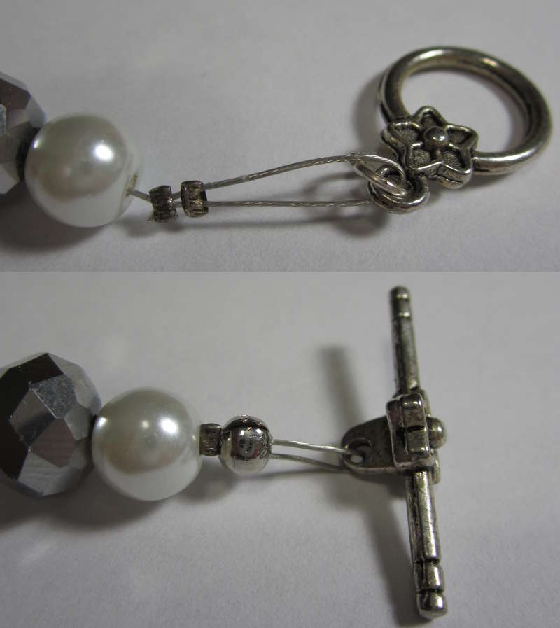 In my old stash of finished pieces I found a good example. One end is with a crimp bead cover and short loop, the other one with a cover and with a too long loop. I’m not satisfied with it these days.