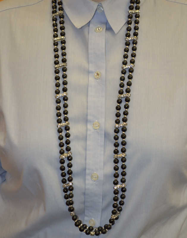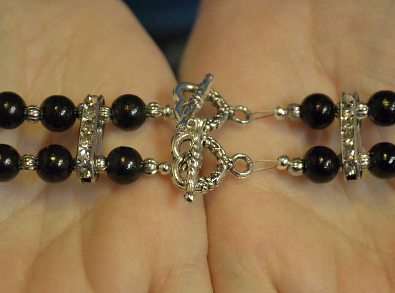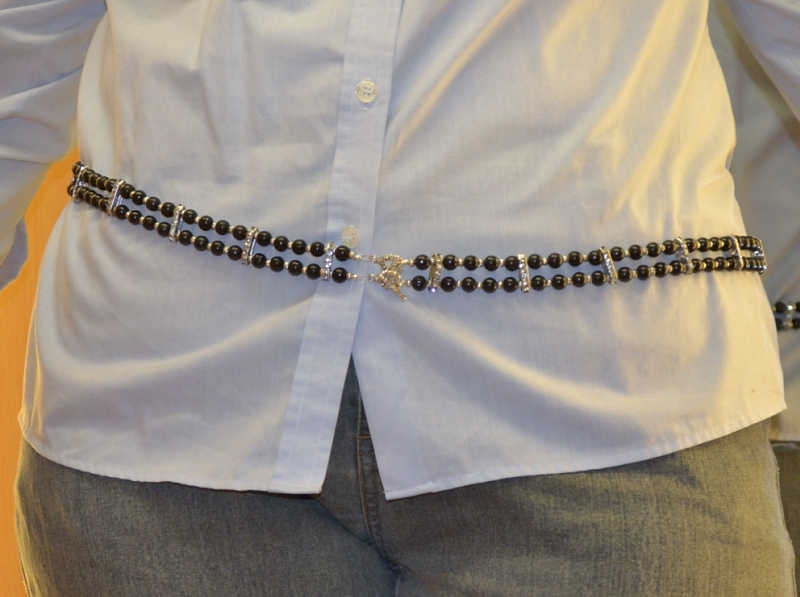Helmivyö lienee kielemme runollisimpia sanoja, sillä kuvataan yleensä tähtitaivasta, mutta helmivöitä on myös oikeasti olemassa. Tein itselleni oman helmivyön mustista puuhelmistä, metallisista välihelmistä ja koristeellisista jakajista. Jakajat ovat ehdottoman tärkeitä tässä projektissa, sillä ne rytmittävät helmirivejä ja pitävät vyön muodossaan. Lukkona on käytetty salpalukkoja, kummallekin riville omansa.