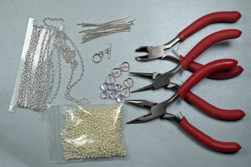 – kolmet pihdit: sivuleikkurit, pyörökärkipihdit ja puristuspihdit- vähintään kahta lajia helmiä, joista toiset ovat pieniä (2-3 mm)