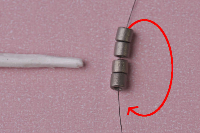 Saatuasi yhden valmiiksi siirry seuraavalle tahkolle ja tee toinen samanlainen: lisää kaksi helmeä saadaksesi neljän helmen ympyrän.