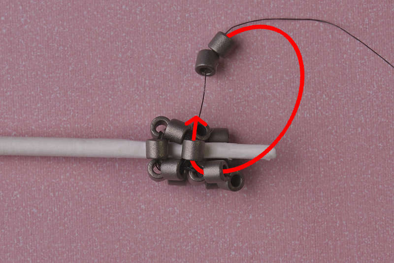 Tämä kierros on oikeastaan ihan samanlainen kuin edellinenkin, mutta kertaus ei liene pahitteeksi. Taas aloitetaan lisäämällä kolme helmeä. Muistathan: 3-2-2-1.