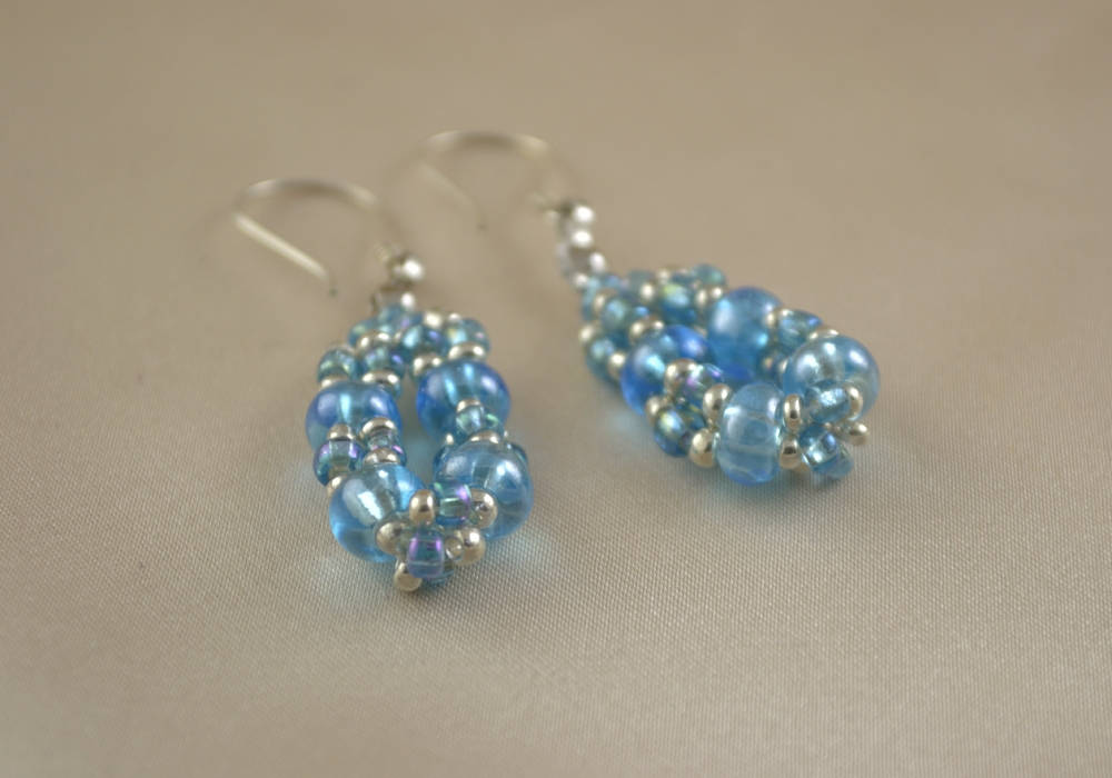 Jos innostusta ja tarvikkeita riittää, pitkälti samalla tavalla voit tehdä myös korvakorut rannekorun kaveriksi.