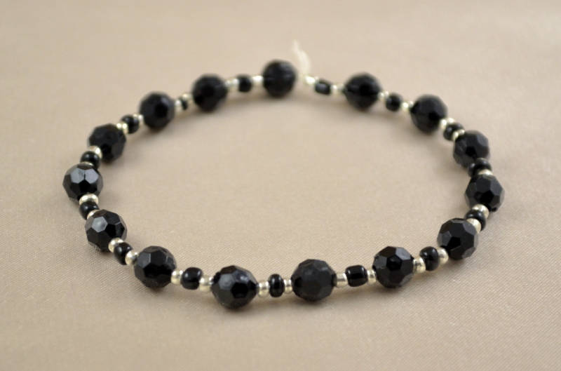 Tässä esimerkki yhdestä, josta tuli purkamalla parempi. Sain tuttavalta kasan mustia muovihelmiä. Musta ja hopea ovat aina varma yhdistelmä, joten siitä oli hyvä lähteä työstämään. Kuvassa oleva kuminauhaan tehty rannekoru ei ole susiruma, mutta en ole siihen tyytyväinen. Siitä puuttuu sitä jotain. Parempi tulos tuli, kun samoja helmiä koottiin eri tavalla. Parempi korukin oli niin yksinkertainen tehdä, että suunnittelen tekeväni seuraavaksi blogiin yksityiskohtaiset ohjeet siitä, miten koru tehtiin.